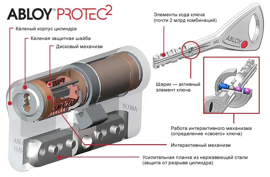 Финская компания Abloy известна прежде всего своими цилиндрами. Особенность их в том, что дисковая конструкция механизма была разработана более века назад. Техническое решение оказалось столь надежным в работе, что на нем базируются и современные модели Abloy с применением всех технологий нашего времени. Предлагаемые цилиндры Protec обладают безо всякого преувеличения отличной взломостойкостью и безотказностью — это настоящие «рабочие лошадки», которые, как говорится, поставил и забыл.
