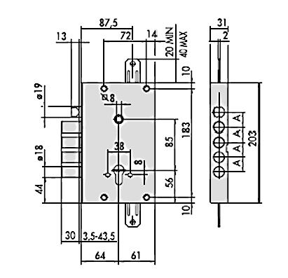 Модель Cisa 56435Замок із защіпкою та керуванням ручкою для сталевих дверей з правим та лівим відкриттям.