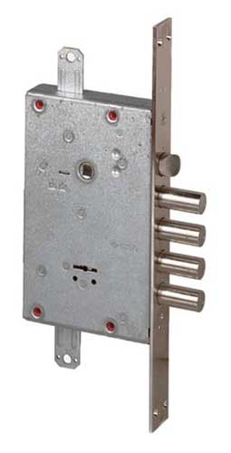 Модель Cisa 57986Подвійний замок із защіпкою та керуванням ручкою для важких сталевих дверей з правим та лівим відкриттям. Можливе багаторазове перекодування. Верхня защіпка керується циліндровим механізмом, чотири нижні засуви — сугальдною частиною замка. Комплектація замка містить набір із технічним ключем та запечатаним комплектом основних ключів. Технічний ключ використовується на стадії будівельних робіт, після їх закінчення замок перекодується на основний набір.