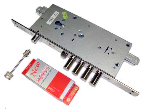Модель Cisa 57785Подвійний замок із защіпкою та керуванням ручкою для важких сталевих дверей з правим та лівим відкриттям. Верхня защіпка керується циліндровим механізмом, чотири нижні засуви сугальдною частиною замка. Особливістю моделі є технологія Antipicking, що підвищує рівень протистояння замка для розкриття маніпуляційними методиками.