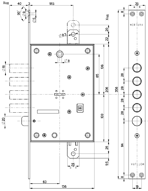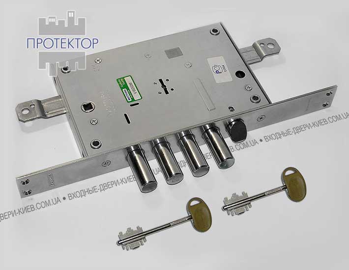 У комплект, крім замка, входить запірна планка, внутрішня та зовнішня декоративні накладки, набір із п'яти ключів.