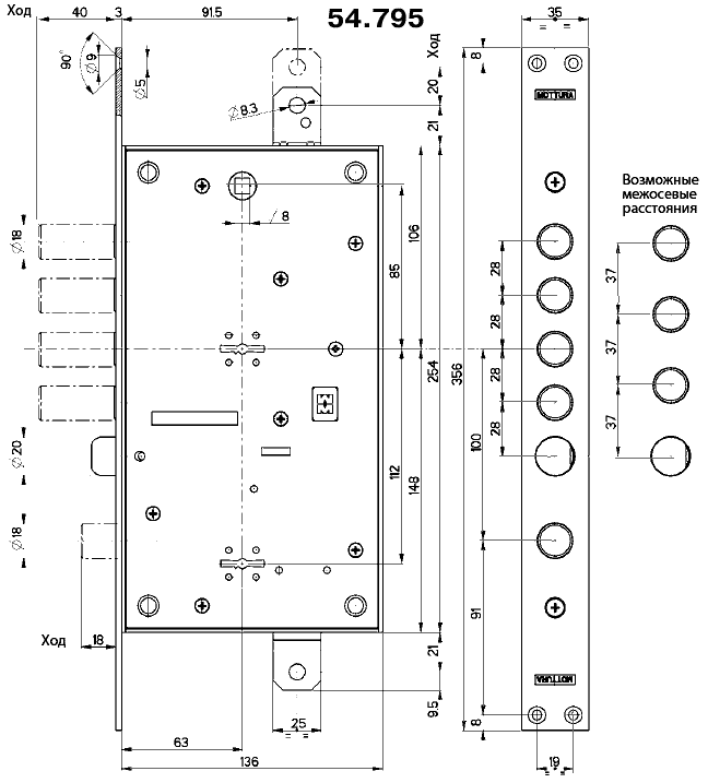 Подвійний сугальдний замок 54-ї серії з защіпкою та керуванням фалевою ручкою. Основне призначення — експлуатація у важких сталевих дверях. Виготовлений в Італії.