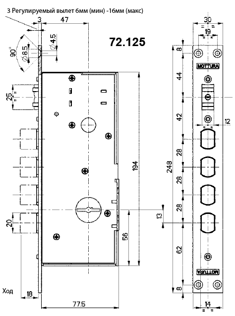 - Тип замка за способом монтажу — врізний (бічний)