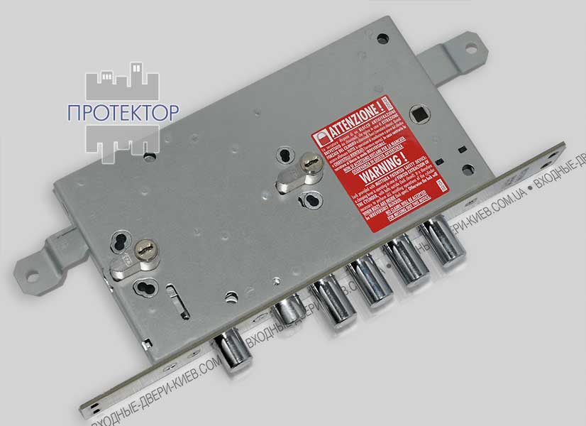 Модель оснащена захистом від забивання ригелів всередину корпусу і блокуванням ходу ригелів при несанкціонованому вилученні циліндра (вибиванні, зламі з вириванням тощо). Блокування працює у закритому положенні замка при повністю висунутих ригелях.