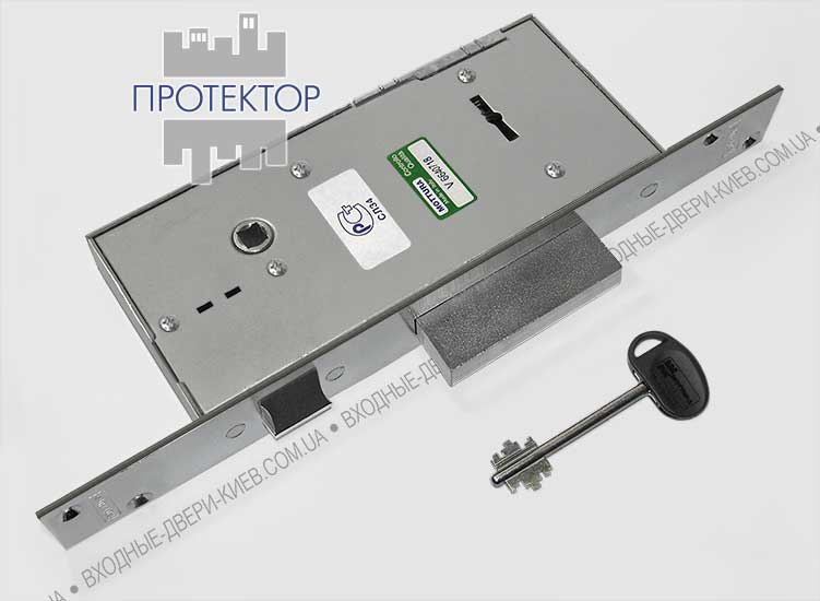 Замок оснащений захистом від розкриття методикою згортання (силовим поворотом) та реверсивною защіпкою, що дозволяє використовувати замок у дверях з правим та лівим відчиненням. У комплект, крім замка, входить запірна планка, дві декоративні накладки та набір із п'яти ключів.