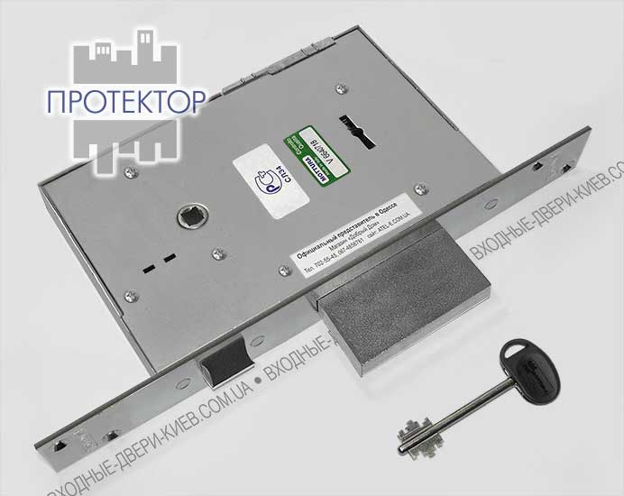 Замок оснащений захистом від розкриття методикою згортання (силовим поворотом) та реверсивною защіпкою, що дозволяє використовувати замок у дверях з правим та лівим відчиненням. У комплект, крім замка, входить запірна планка, дві декоративні накладки та набір із п'яти ключів.