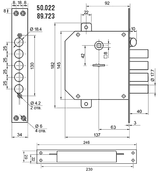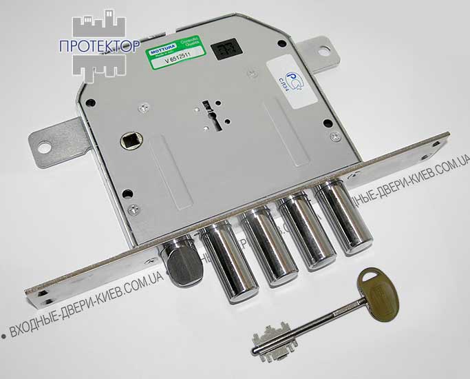 У комплект, крім замка, входить запірна планка, внутрішня та зовнішня декоративні накладки та набір із п'яти ключів.